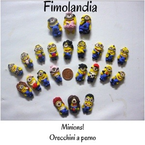 Posted in Idee regalo, Natale, orecchini with tags fimo. natale, idee regalo natale, minions, orecchini on 21 novembre 2013 by paola berti FimolandiaTanti, tutti diversi, sono i simpaticissimi Minions, i piccoli ometti gialli del film “cattivissimo me”. Eccone alcuni nella versione orecchino a perno realizzati in fimo da Fimolandia. Costano 3.50 euro l’uno e sono ordinabili su questa pagina o sulla pagina Facebook o scrivendo a paolaberti12@gmail.com